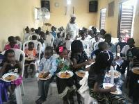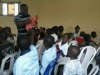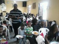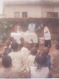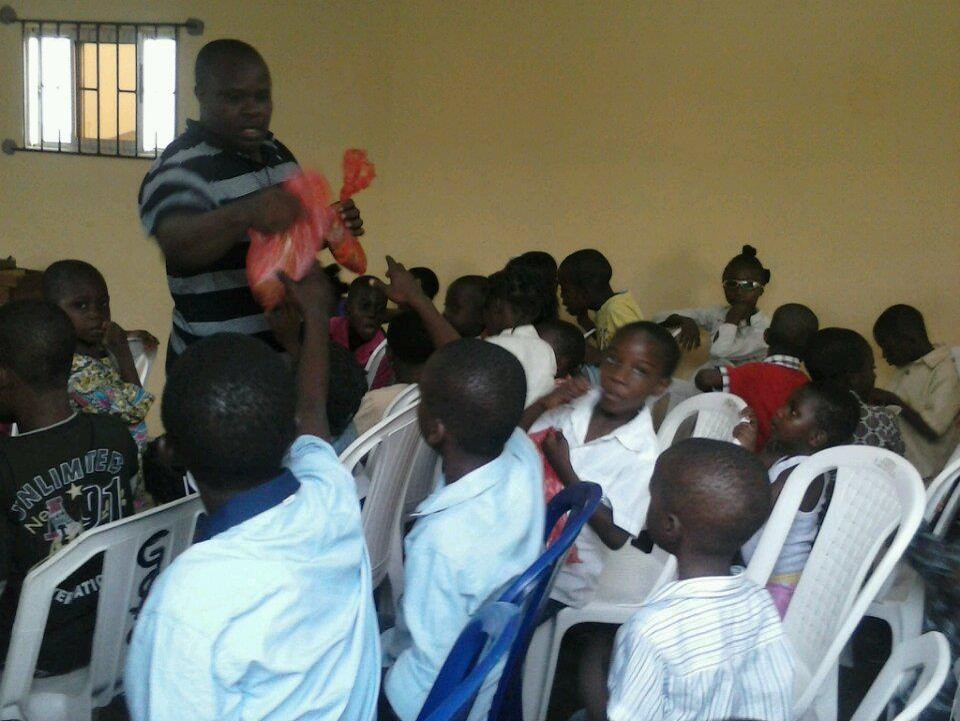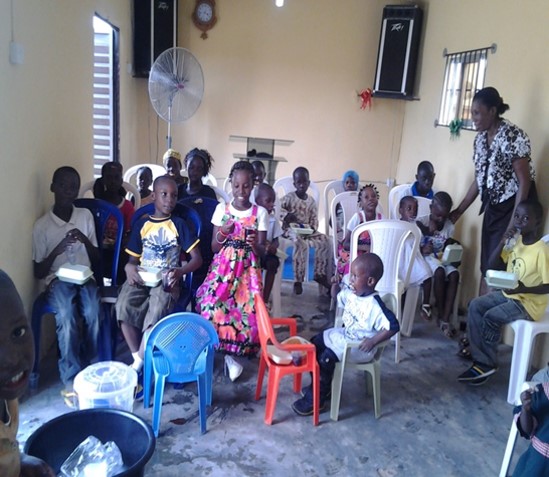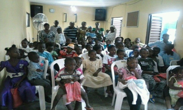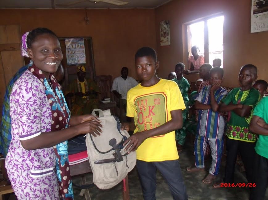 SISTER SALOMI EDOH THE CONDINATOR OF THE ROYAL KIDS PRESENTING THE BACK TO SCHOOL PACK.