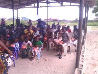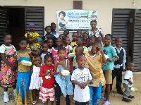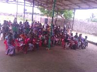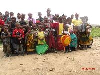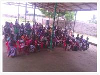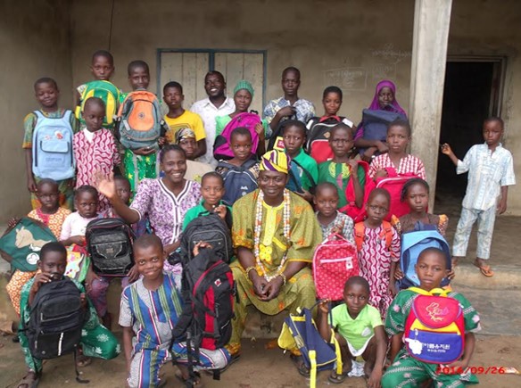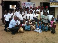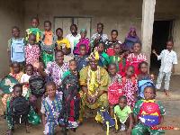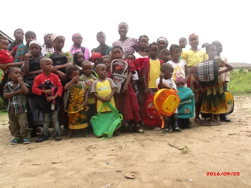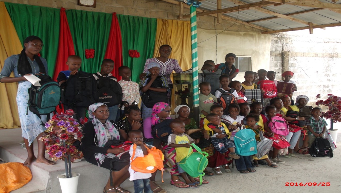 KIDS POSE WITH THEIR BACK TO SCHOOL PACK IN OUR THIRD CHILDREN BIBLE CLUB WITH COMMUNITY LEADER...